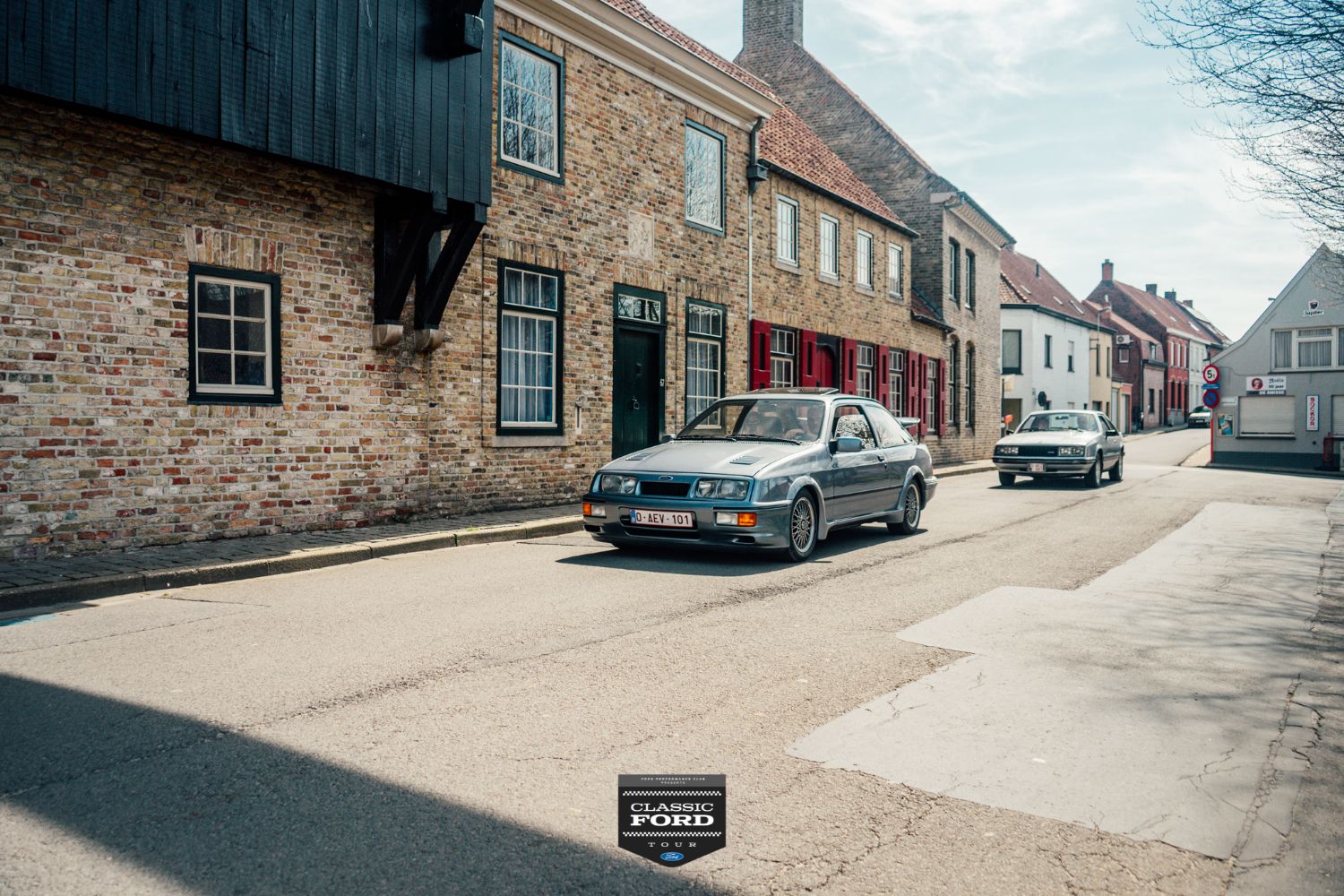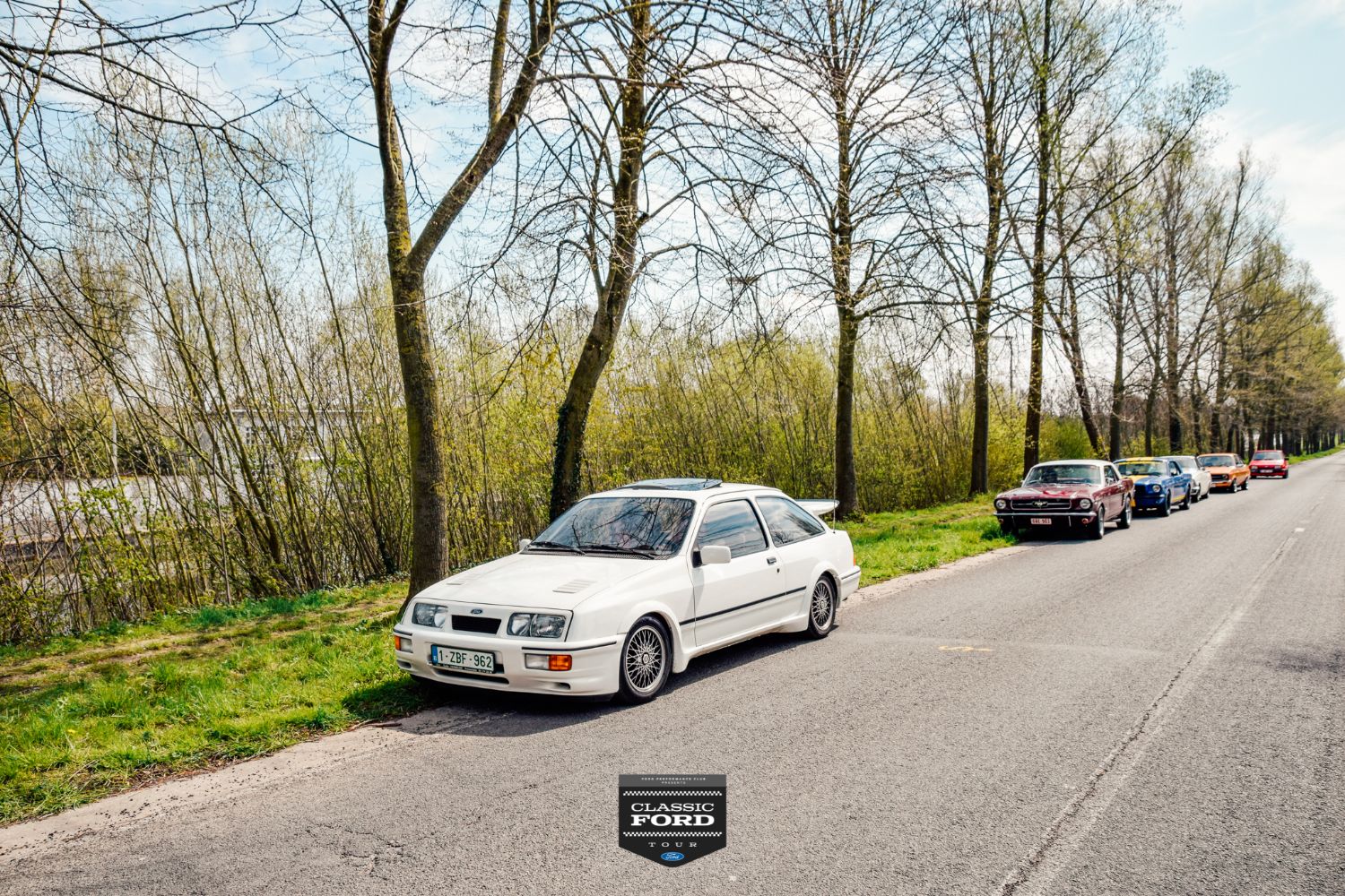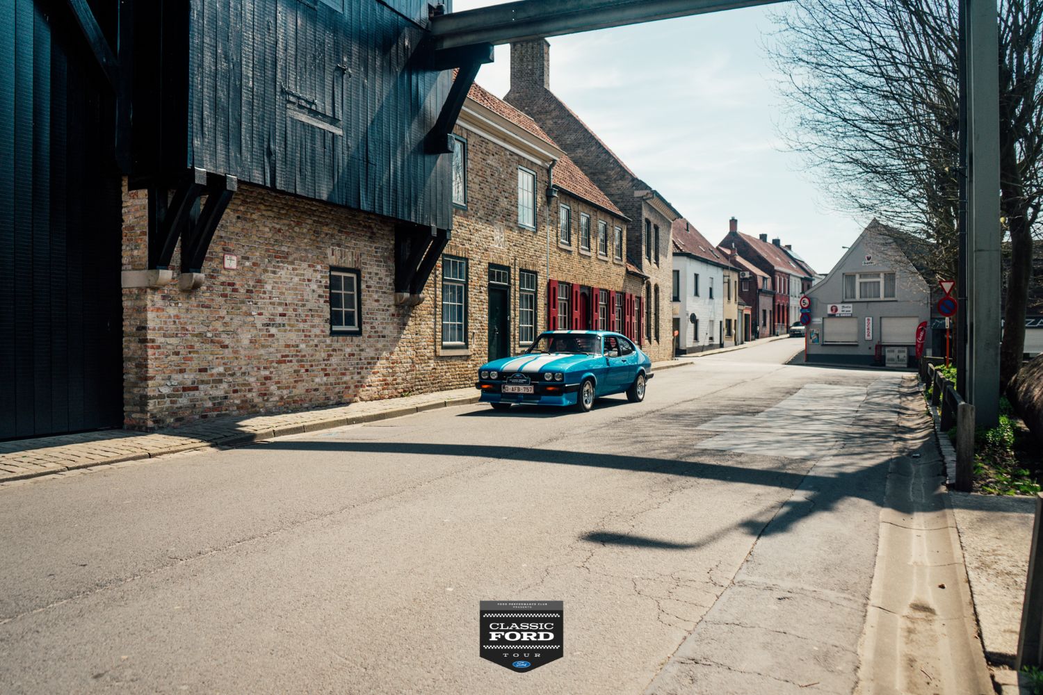 The first Classic Ford Tour was a great success, 30 beautiful classic Fords from 1938 to 1993 participated in this coronaproof tour along the most beautiful roads of West and East Flanders. The tour started from Apéro Château in Beernem, after a good 160 km and some nice stops the participants arrived in Staden where they had the opportunity to catch up in a pleasant atmosphere.
